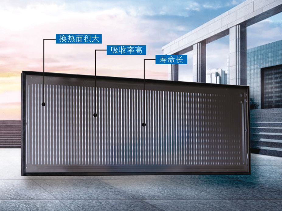 天豐全流道平板集熱器采用獨(dú)有鈦基陶瓷膜層,耐候性高,耐磨性好、耐堿性更佳、衰減性低,膜層質(zhì)量穩(wěn)定性高,無色差,一致性好,杜絕起水霧與外界潮氣侵蝕吸熱涂層,得熱量超出國家一級能效的20%以上。