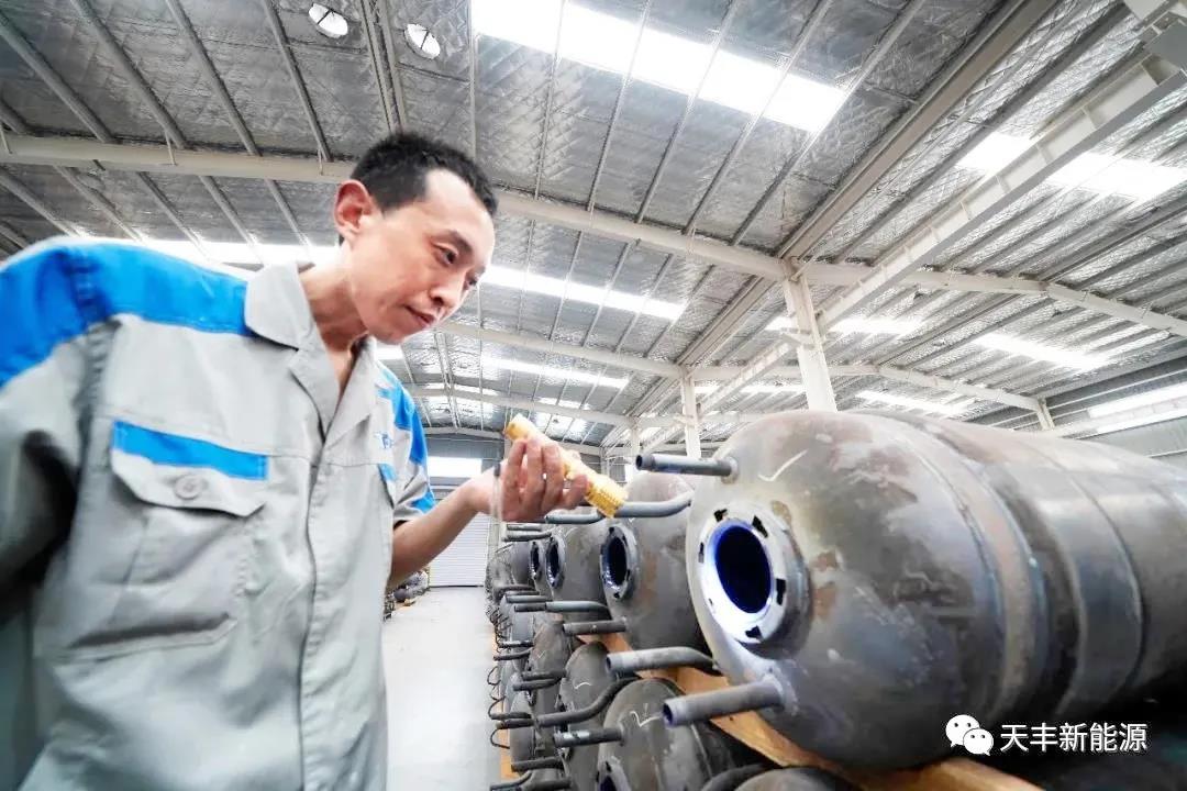 在搪瓷生產線,天豐工藝、技術應用程度保持著領先地位。公司配備360°自動涂搪機,根據濕法搪瓷工藝,能夠快速高效地將搪瓷料均勻的涂刷至承壓水箱內膽壁上,并實現高效附著。